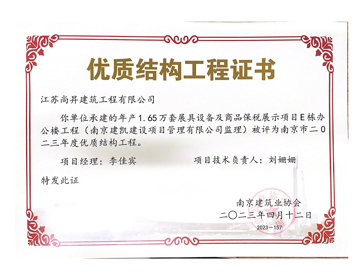 年產(chǎn)1.65萬套展具設備及商品保稅展示項目榮獲“2023年度優(yōu)質結構工程”