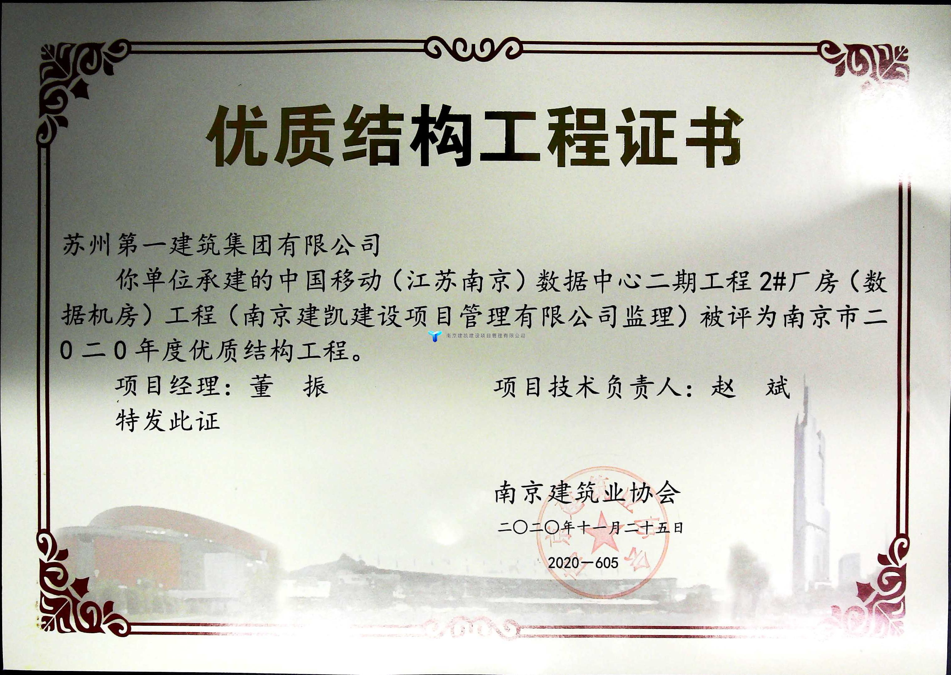 2020年榮獲優(yōu)質結構工程的項目——中國移動(江蘇南京)數(shù)據中心二期工程2#廠房