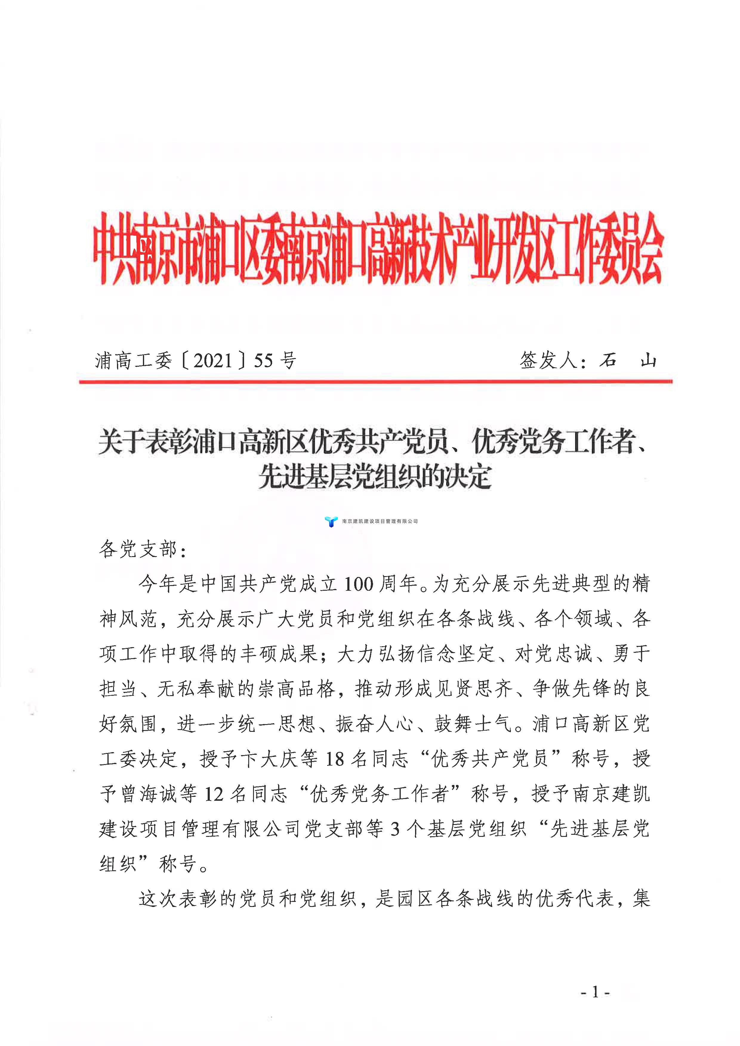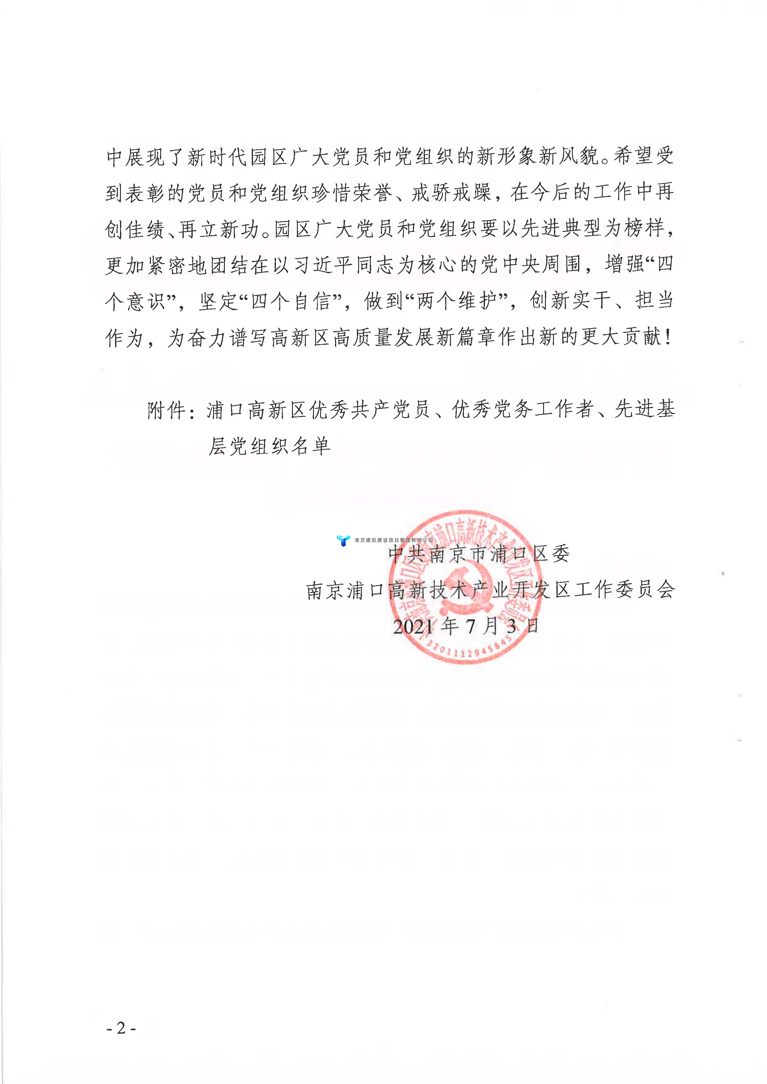 公司榮獲“浦口高新區(qū)先進基層黨組織”并表彰!