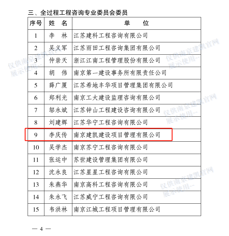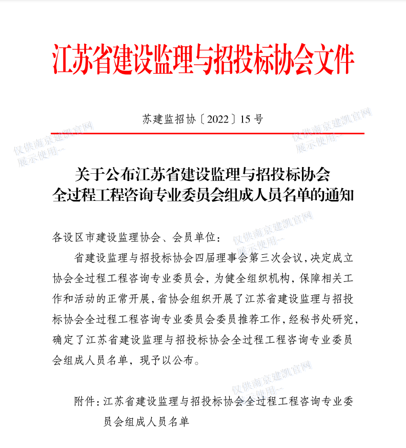 恭喜我司李慶傳同志入選“江蘇省建設(shè)監(jiān)理與招投標(biāo)協(xié)會(huì)全過(guò)程工作咨詢(xún)專(zhuān)業(yè)委員會(huì)組成人員名單”