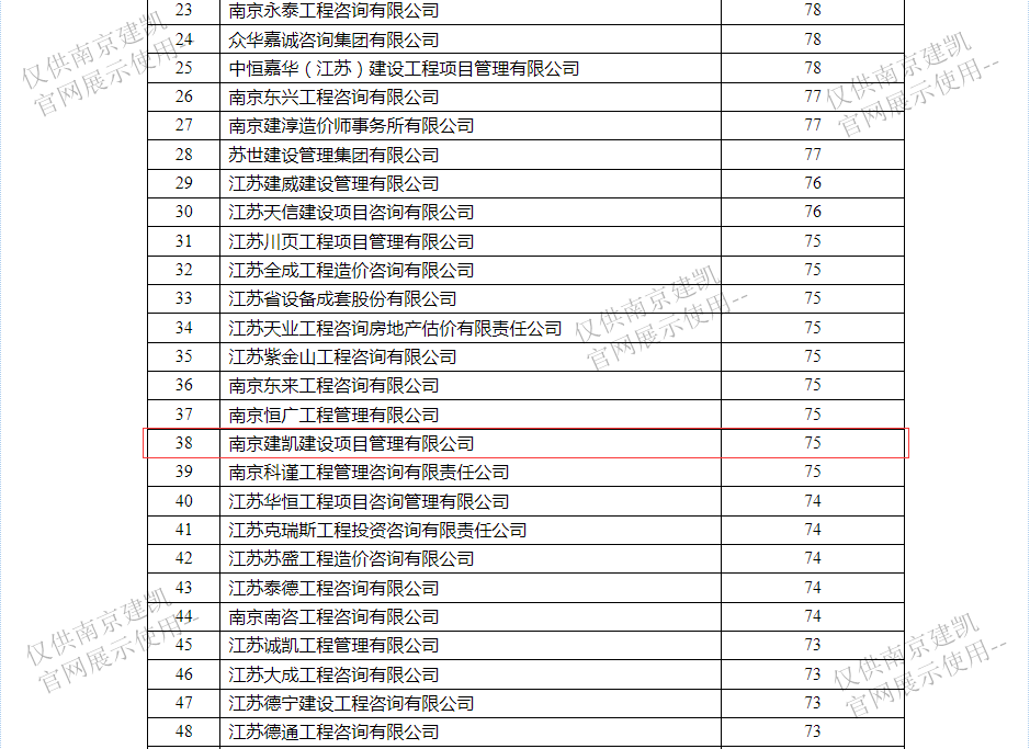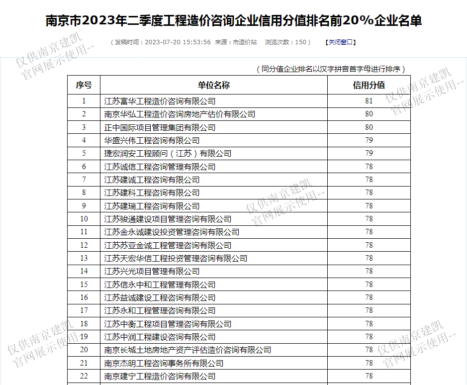 恭喜我司入選“南京市2023年二季度工程造價咨詢企業(yè)信用分值排名前20%企業(yè)名單”