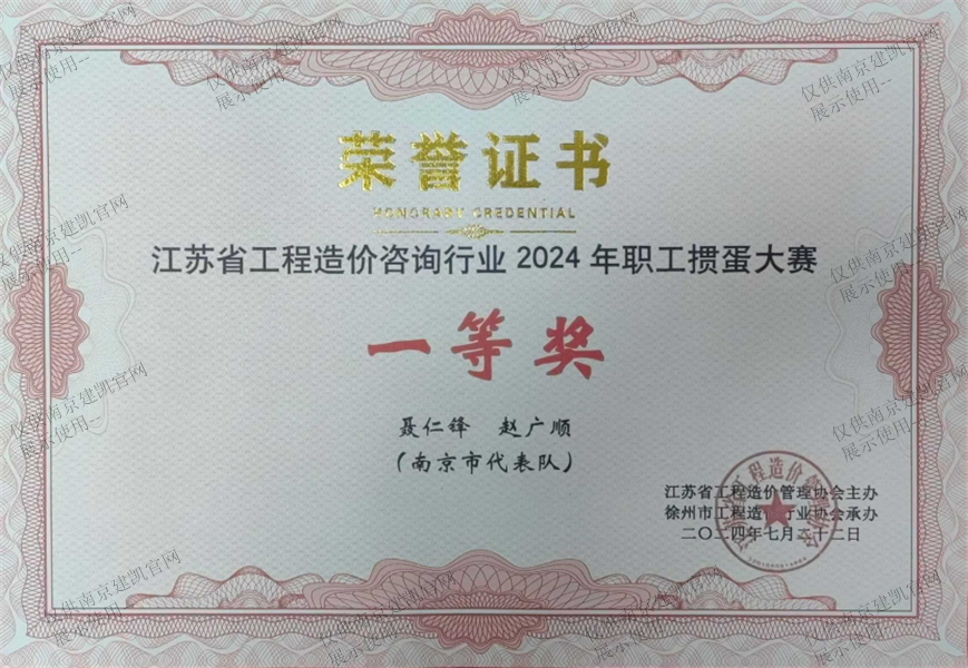 熱烈祝賀我司榮獲“江蘇省工程造價(jià)咨詢行業(yè)2024年職工摜蛋大賽一等獎(jiǎng)”