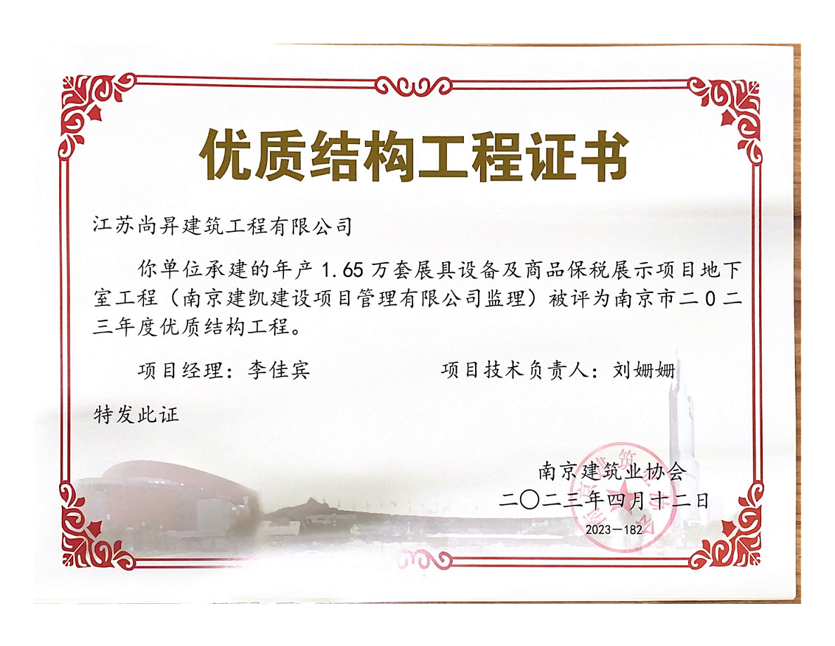 年產1.65萬套展具設備及商品保稅展示項榮獲“2023年度優(yōu)質結構工程”