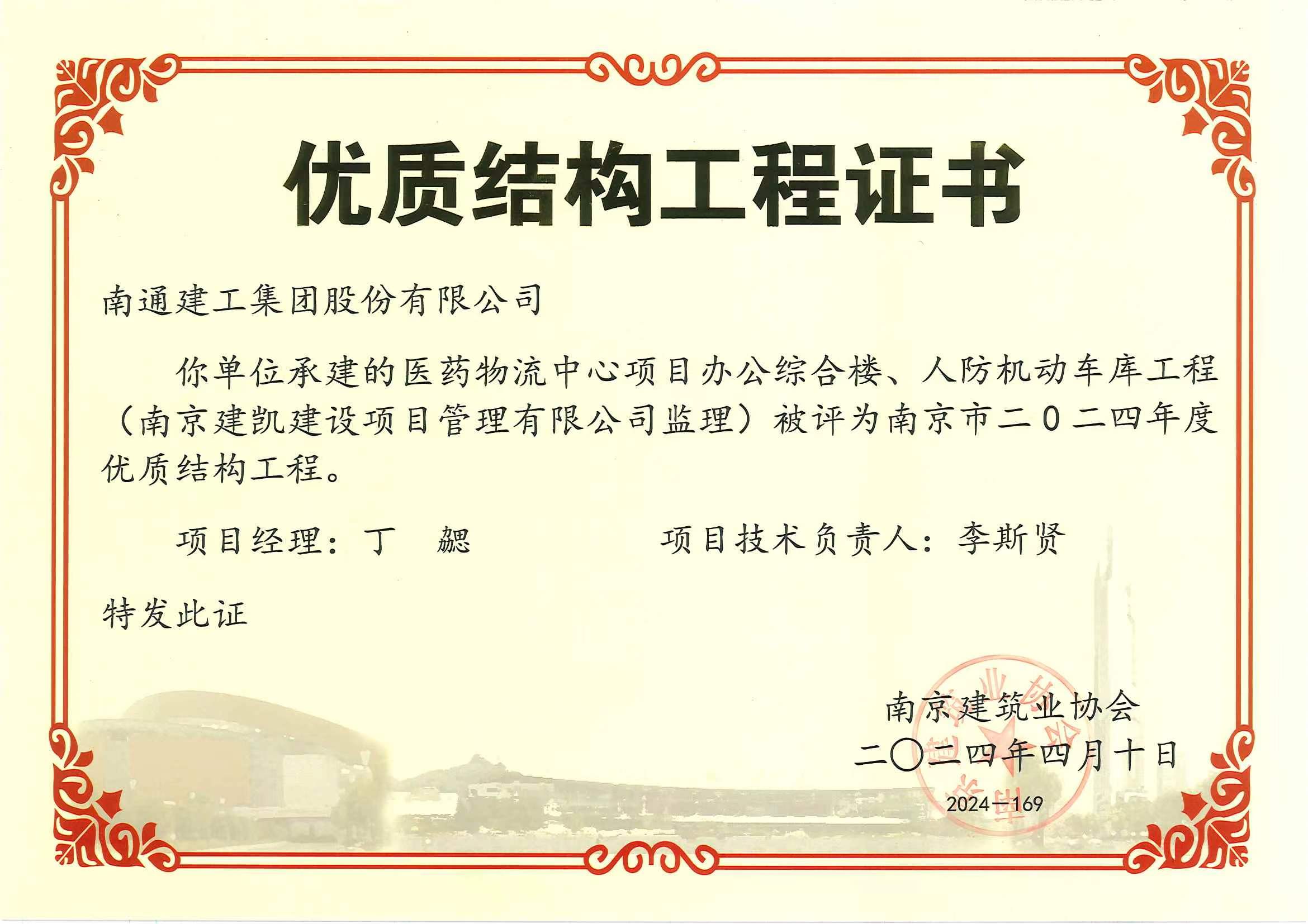 醫(yī)藥物流中心項目辦公綜合樓、人防機(jī)動車庫工程榮獲“南京市優(yōu)質(zhì)工程獎”