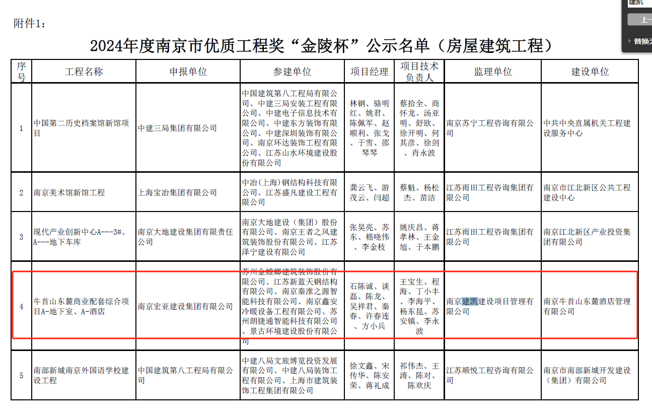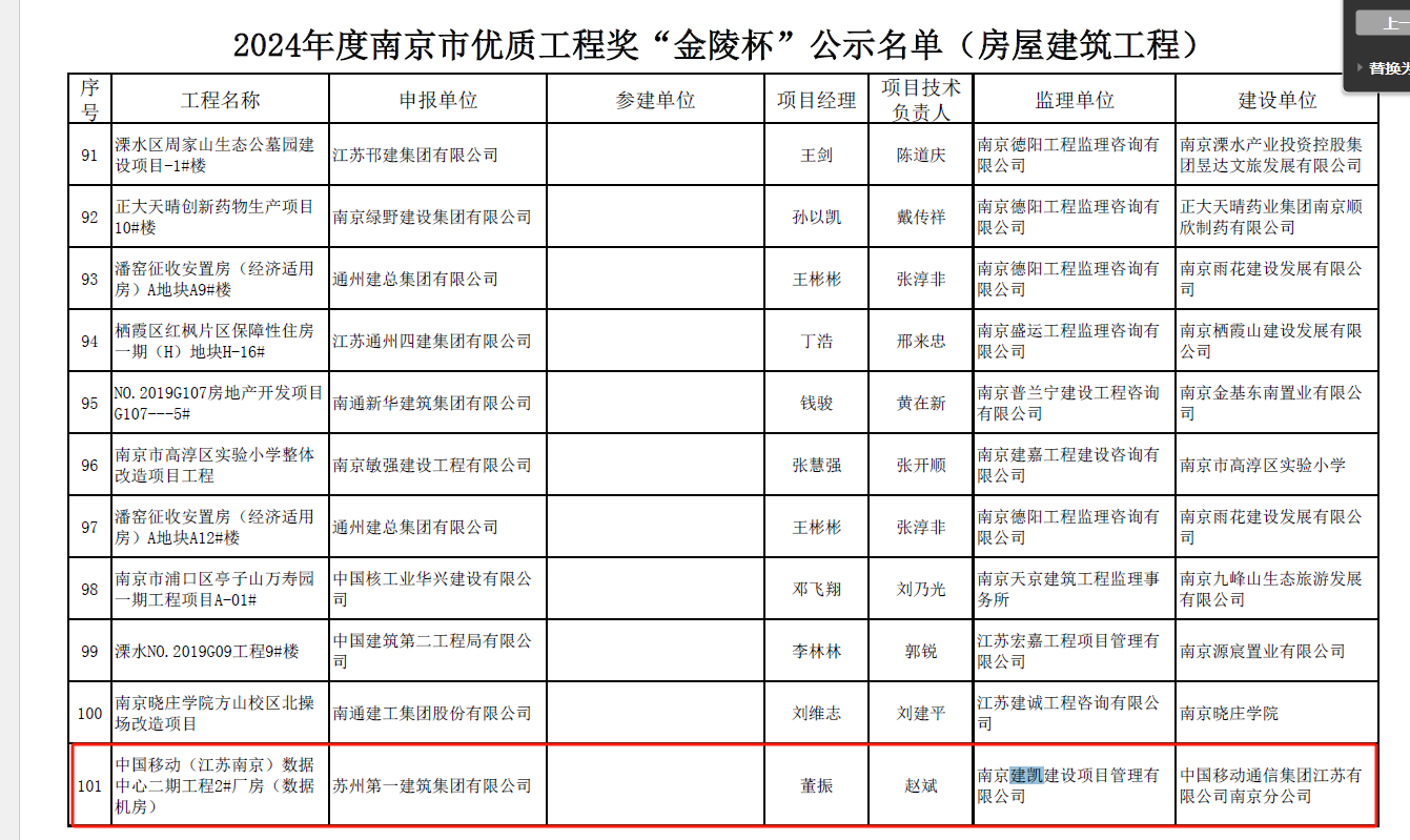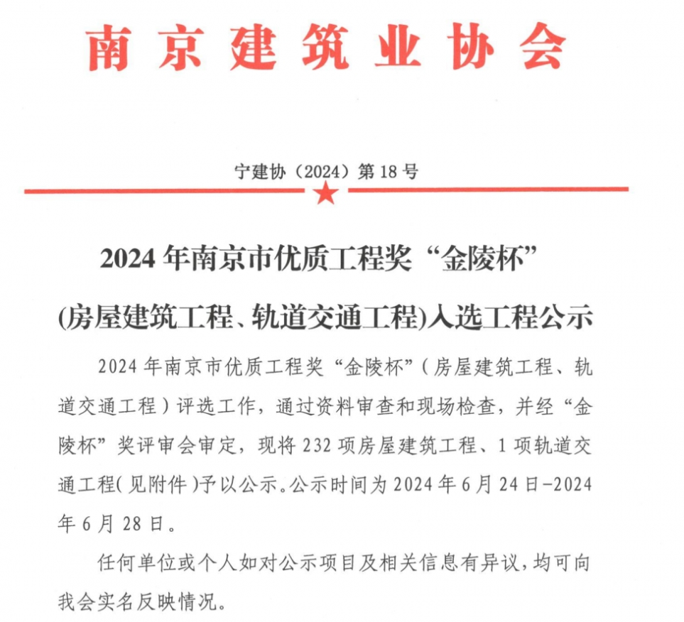 2024年南京市優(yōu)質(zhì)工程獎(jiǎng)“金陵杯”入選公示