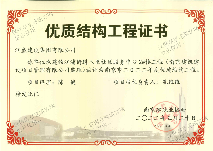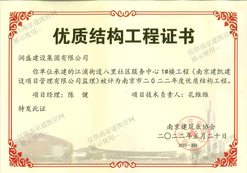 南京市二0二二年度優(yōu)質(zhì)結(jié)構(gòu)工程(江浦街道八里社區(qū)服務(wù)中心2#樓工程)