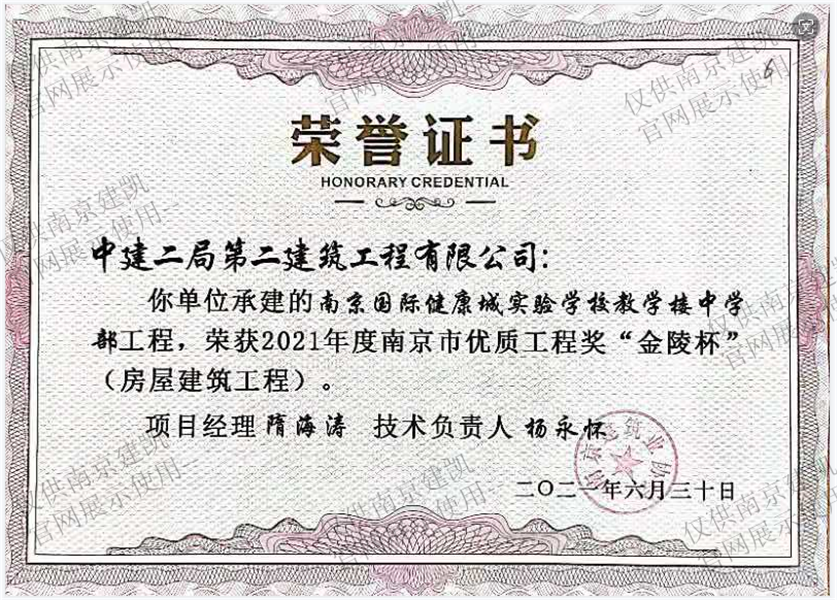 2021年度南京市優(yōu)質(zhì)工程獎“金陵杯”(房屋建筑工程)