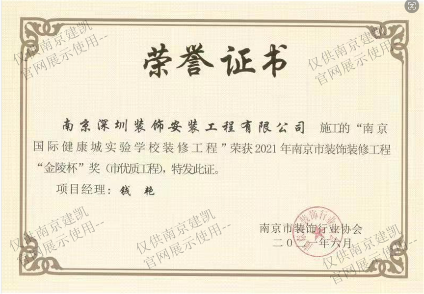 2021年南京市裝飾裝修工程“金陵杯”獎(市優(yōu)質(zhì)工程)