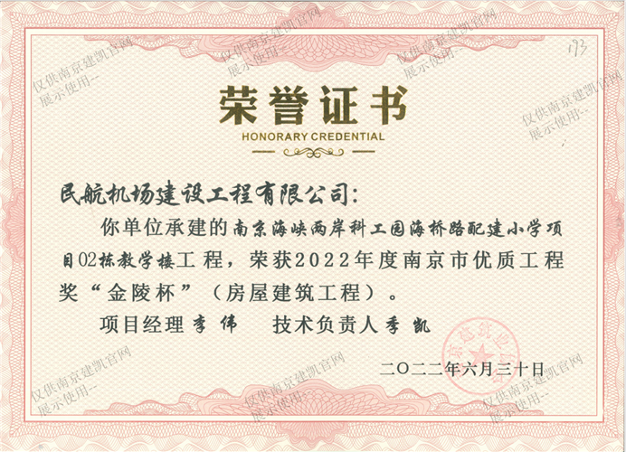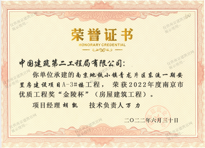 2022年度南京市優(yōu)質(zhì)工程獎“金陵杯”(房屋建筑工程)